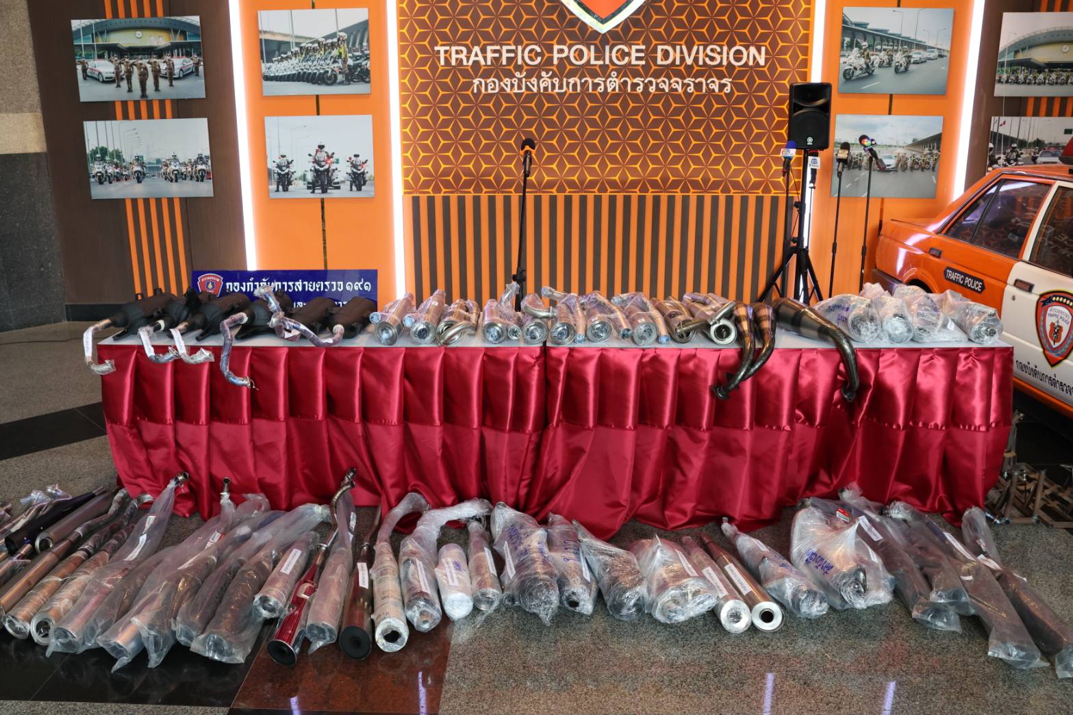 ได้ร่วมกันทำการตรวจยึดท่อไอเสียรถจักรยานยนต์ผิดกฎหมาย ทั้งหมด จำนวน 57 ใบ
