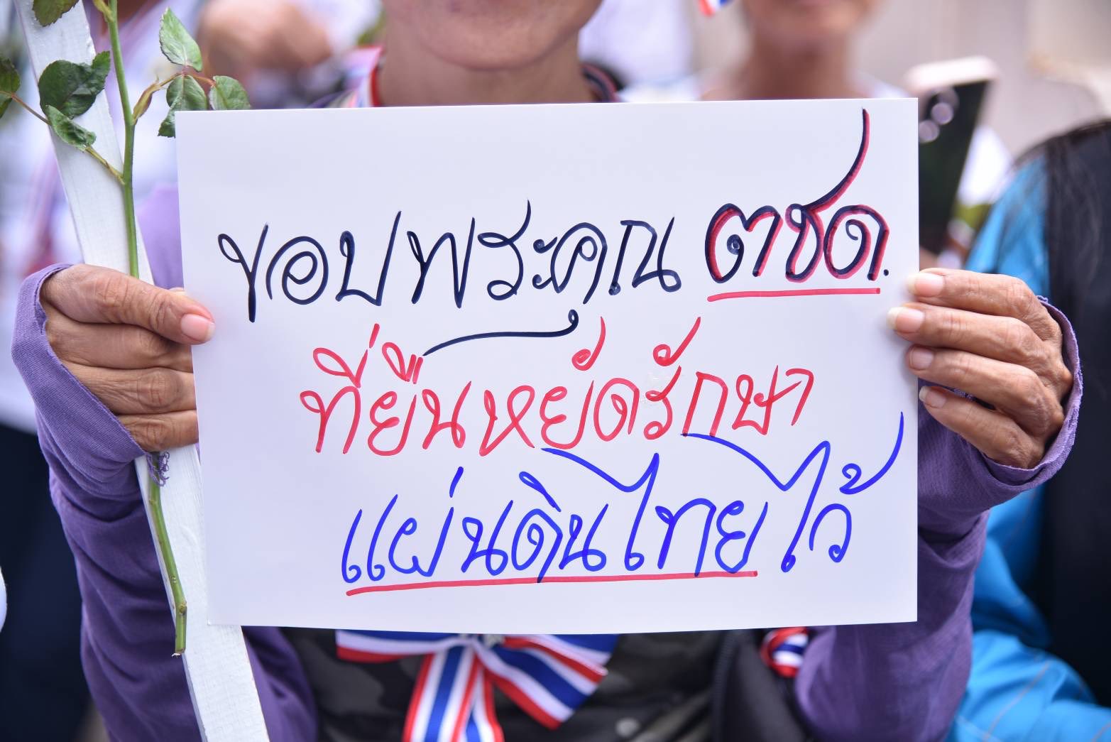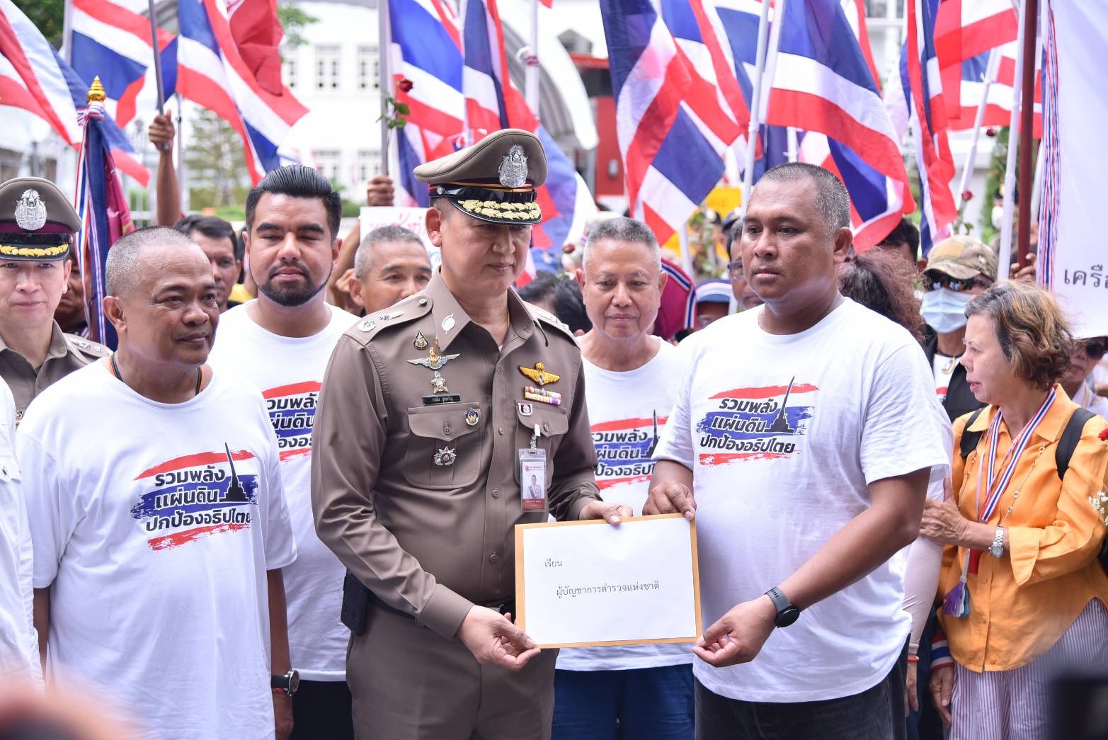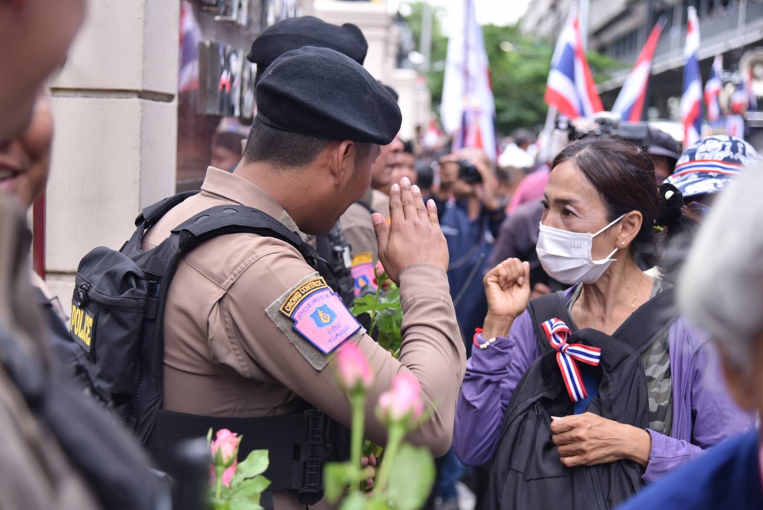 ประชาชน คปท. ศปปส. กลุ่มกองทัพธรรมให้กำลังใจตำรวจที่มีส่วนร่วมในการปกป้องอธิปไตยของไทย