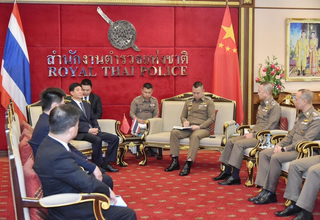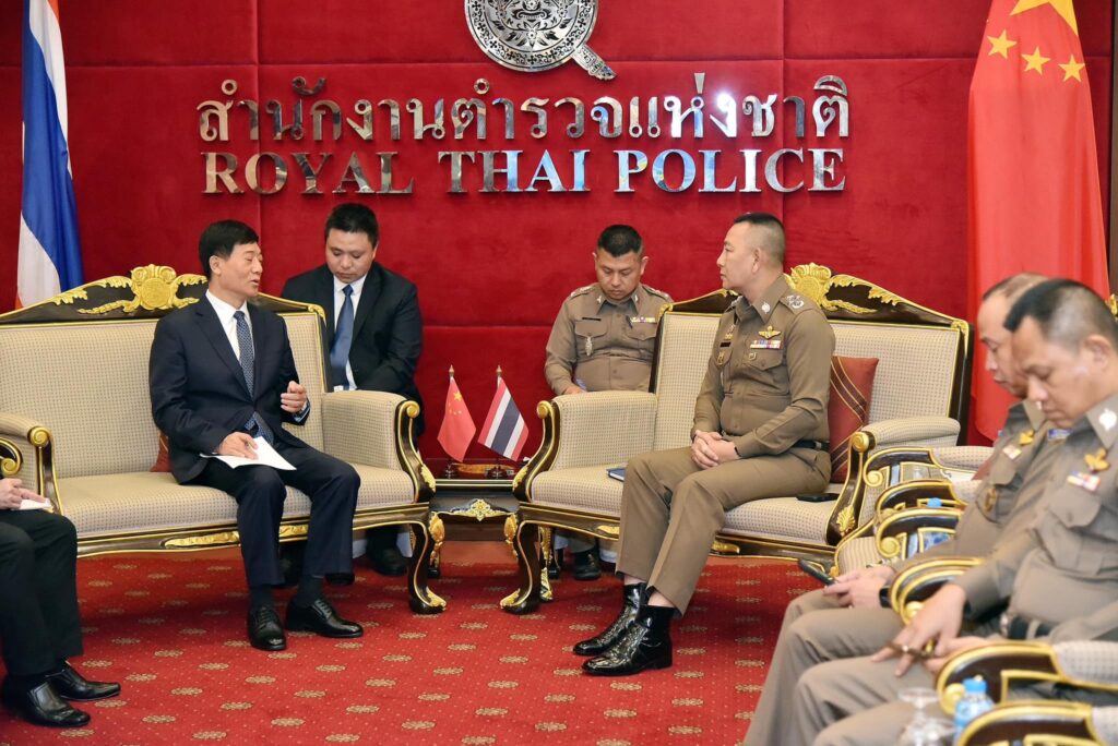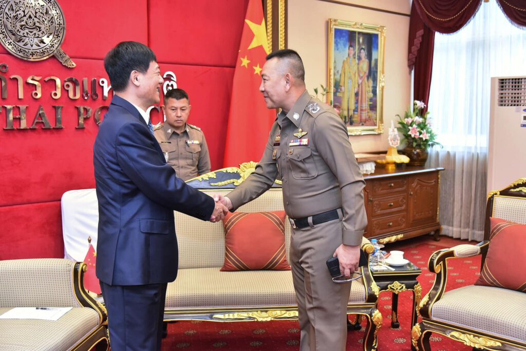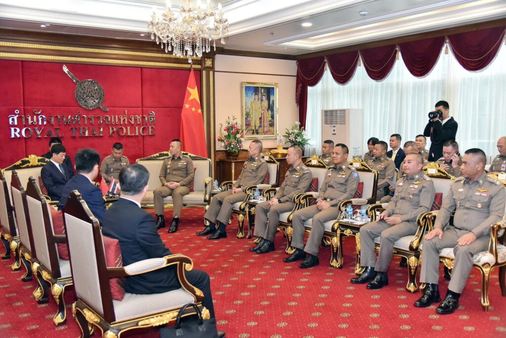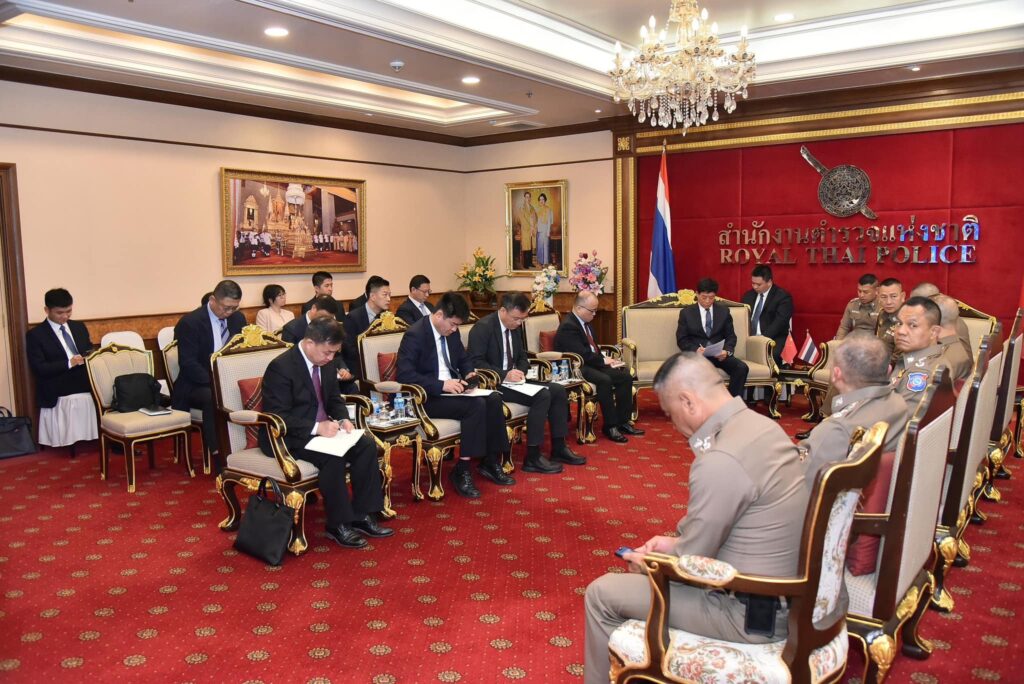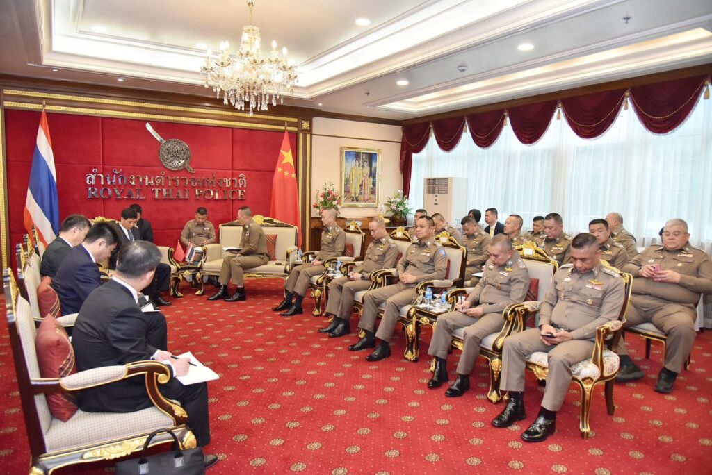 ผู้ช่วย รมต.ว่าการกระทรวงความมั่นคงสาธารณะแห่งสาธารณรัฐประชาชนจีน และคณะ ในโอกาสเข้าเยี่ยมคารวะ เพื่อหารือข้อราชการเกี่ยวกับการปราบปรามแก๊งคอลเซ็นเตอร์ และ คดีอื่นๆ ร่วมถึงการจัดตั้งศูนย์ประสานงาน และปฏิบัติการร่วม ไทย- จีน