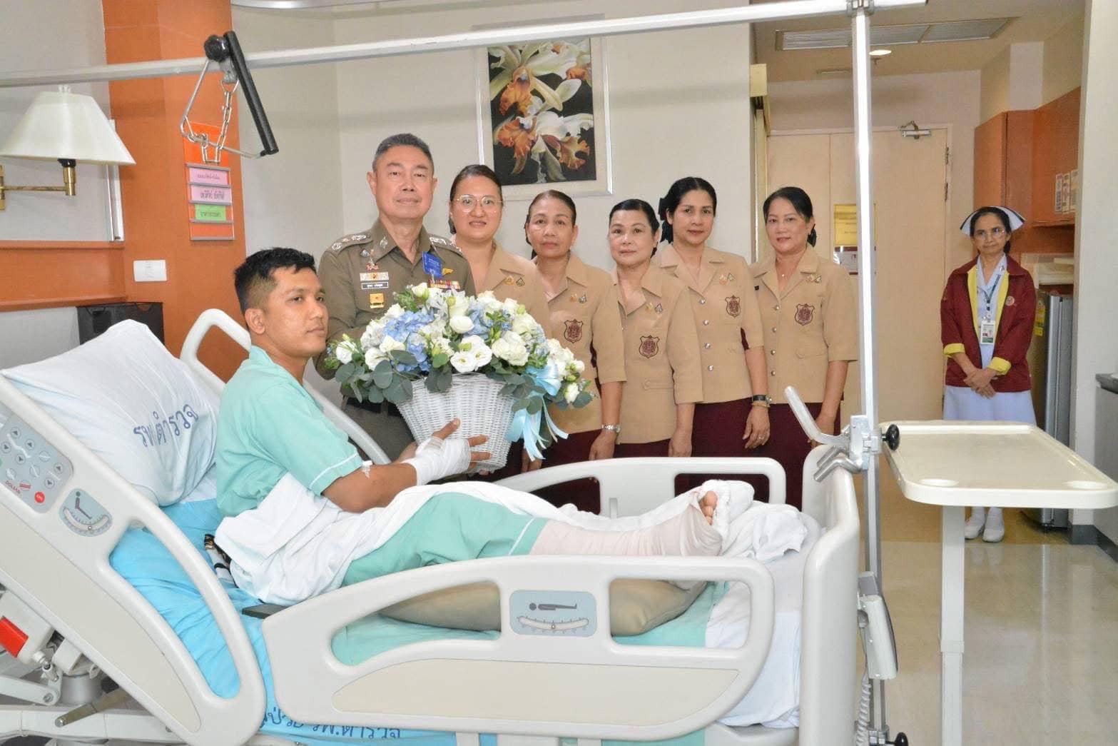 เมื่อวันที่ 19 มีนาคม 2568 ขณะเจ้าหน้าที่ตำรวจกำลังปฏิบัติหน้าที่ตั้งกล้องจับความเร็วบริเวณถนนสายเอเชีย ต.บางน้ำเชี่ยว อ.พรหมบุรี จ.สิงห์บุรี เกิดอาการเกร็ง แขนขาอ่อนแรง และวูบหมดสติ ได้ส่งตัวเข้ารับการรักษาต่อที่โรงพยาบาลตำรวจ ซึ่งอาการโดยทั่วไปดีขึ้น ขณะนี้ทำกายภาพอย่างต่อเนื่องและสามารถพูดโต้ตอบสื่อสารได้