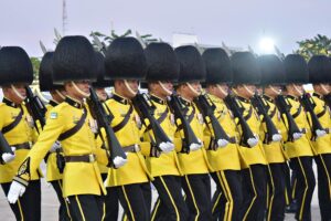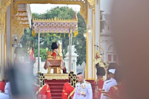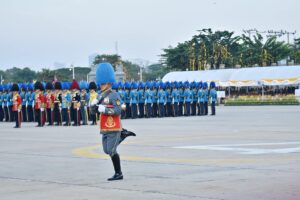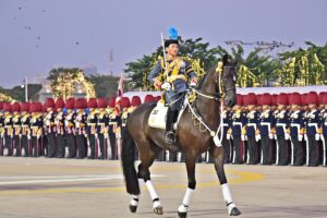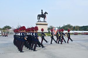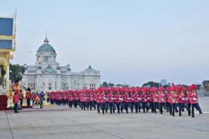วันที่ 3 ธันวาคม 2567 เวลา 17.00 น. ณ ลานพระราชวังดุสิต / พล.ต.อ.กิตติ์รัฐ พันธุ์เพ็ชร์ ผบ.ตร. พร้อมด้วย คุณกนกวรรณ พันธุ์เพ็ชร์ ภริยา ร่วมเฝ้าฯ รับเสด็จ พระบาทสมเด็จพระเจ้าอยู่หัว เสด็จฯ ในพิธีสวนสนามและถวายสัตย์ปฏิญาณตนของทหารรักษาพระองค์ เนื่องในโอกาสพระราชพิธีมหามคลเฉลิมพระชนมพรรษา 6 รอบ 28 กรกฎาคม 2567 “ราชวัลลภ เทิดไท้จอมราชา 72 พรรษามหามงคล” ในการนี้ พลเอกหญิง สมเด็จพระนางเจ้าสุทิดา พัชรสุธาพิมลลักษณ พระบรมราชินี ทรงนำการสวนสนามของทหารมหาดเล็กราชวัลลภรักษาพระองค์และทหารรักษาพระองค์สามเหล่าทัพในตำแหน่ง “องค์ผู้บังคับกองผสม” พร้อมด้วย พลเอกหญิง สมเด็จพระเจ้าลูกเธอ เจ้าฟ้าสิริวัณณวรี นารีรัตนราชกัญญา ร่วมสวนสนาม ทรงม้านำขบวนกองพันทหารม้ารักษาพระองค์ในตำแหน่ง “องค์ผู้บังคับกองพันทหารม้ารักษาพระองค์“ ในการนี้ สมเด็จพระกนิษฐาธิราชเจ้า กรมสมเด็จพระเทพรัตนราชสุดาฯ สยามบรมราชกุมารี และ สมเด็จพระเจ้าลูกยาเธอ เจ้าฟ้าทีปังกรรัศมีโชติ มหาวชิโรตตมางกูร สิริวิบูลยราชกุมาร ทรงเฝ้ารอเฝ้าฯ รับเสด็จฯ ณ พลับพลาที่ประทับ โดยมี นายกรัฐมนตรี คณะรัฐมนตรี ปลัดกระทรวงกลาโหม ผบ.ทสส. ผบ.เหล่าทัพ คณะผู้ช่วยทูตทหาร ข้าราชการทหาร ตำรวจ และประชาชนร่วมชมพิธีฯ