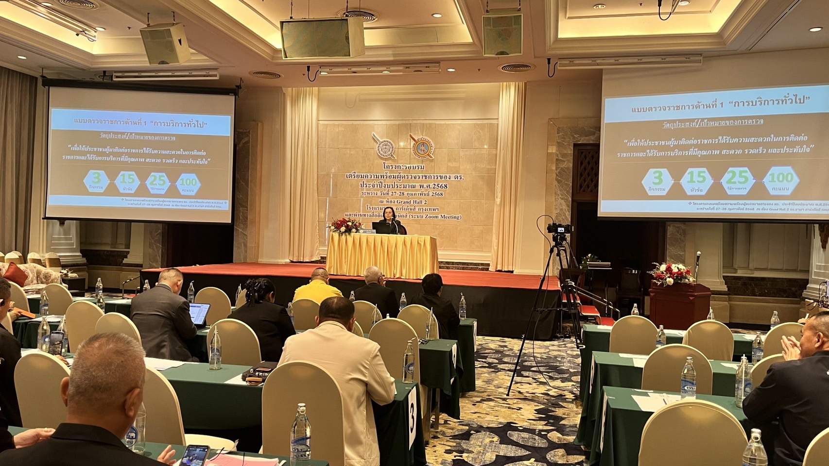 วันที่ 27 ก.พ. 68 จต. อบรมเตรียมความพร้อมผู้ตรวจราชการของ ตร. ประจำปีงบประมาณ พ.ศ. 2568 ระหว่างวันที่ 27-28 ก.พ.68 ณ ห้องประชุม Grand Hall 2 โรงแรมรามาการ์เด้นส์ และผ่านระบบสื่ออิเล็กทรอนิกส์ (Zoom Meeting) ไปยังหน่วยงานในสังกัด ตร. มี พล.ต.ท.บัณฑิต ตุงคะเศรณี จตร.(หน.จต.) เป็นประธานในพิธี การอบรมดังกล่าวมีวัตถุประสงค์เพื่อให้จเรตำรวจประจำหน่วยงาน ผู้ตรวจราชการ ได้รับความรู้ความเข้าใจเกี่ยวกับนโยบายการบริหารราชการของ ตร. รวมถึงแผนการตรวจราชการ แบบและวิธีการตรวจราชการ ตลอดจนการรายงานผลการตรวจราชการ สามารถนำไปใช้เป็นแนวทางในการตรวจราชการได้อย่างเป็นมาตรฐานเดียวกัน ตลอดจนมีความรอบรู้และ มีความพร้อมในการตรวจราชการประจำปี 2568