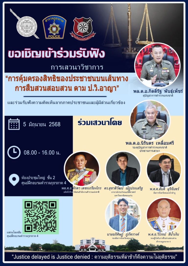พล.ต.อ.กิตติ์รัฐ พันธุ์เพ็ชร์ ผู้บัญชาการตำรวจแห่งชาติ มอบหมายให้ตำรวจภูธรภาค 4 จัดทำโครงการเสวนาเพื่อรับฟังข้อมูลและความเห็นเชิงวิชาการที่มีต่อร่างพระราชบัญญัติแก้ไขเพิ่มเติมประมวลกฎหมายวิธีพิจารณาความอาญา (ฉบับที่…) พ.ศ. …. (เสนอโดยพรรคประชาชน) ในพื้นที่ภาคตะวันออกเฉียงเหนือ โดยมีวัตถุประสงค์เพื่อรับฟังความเห็นและวิเคราะห์ผลกระทบของร่างกฎหมายดังกล่าว รวมถึงแลกเปลี่ยนความเห็นและข้อเสนอในการพัฒนางานสอบสวนของตำรวจ